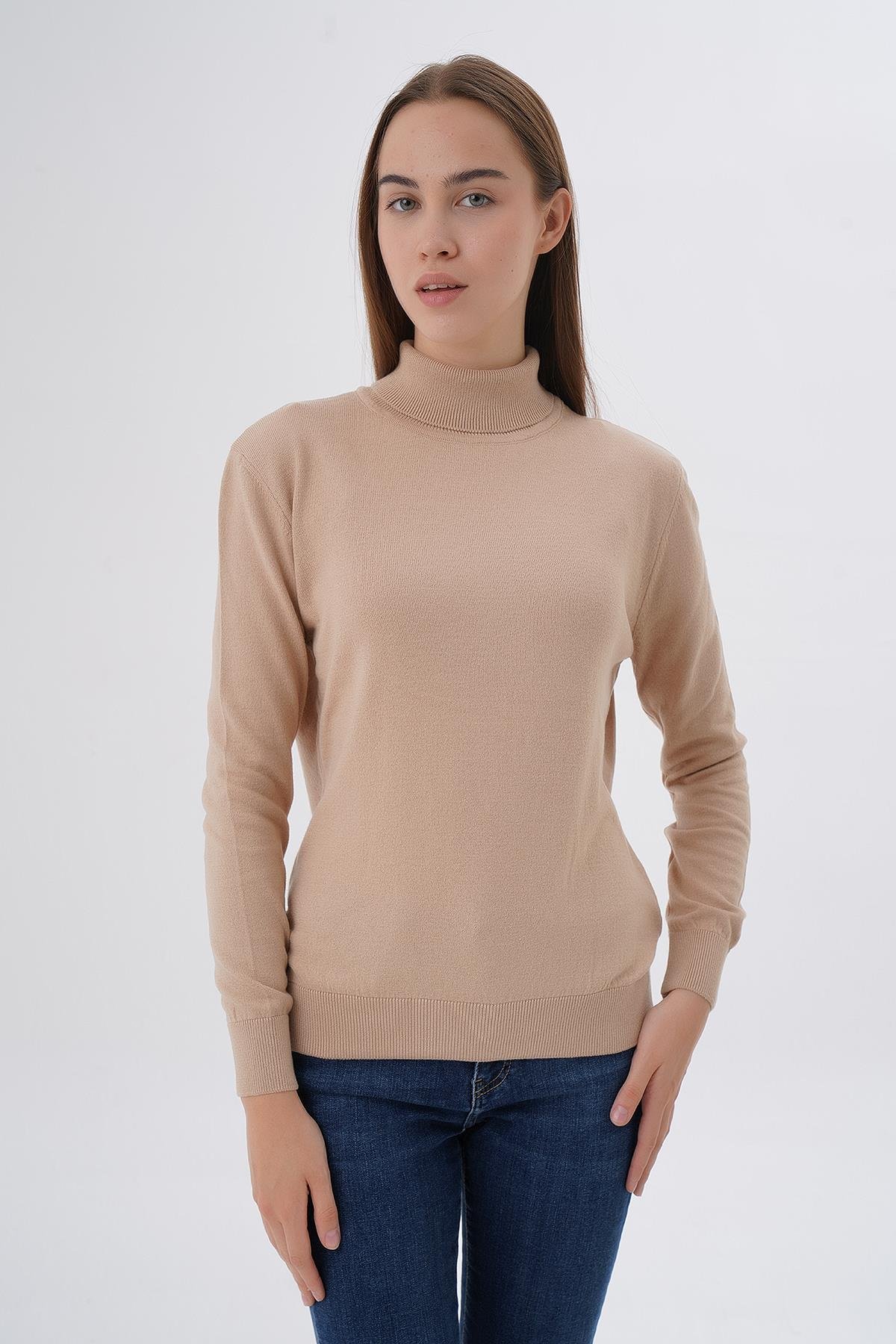 Kadın Bej %100 Organik Pamuk Kısa Balıkçı Yaka Triko Kazak Örme Bluz K-6103 (TRISTK6103SBEJ)
