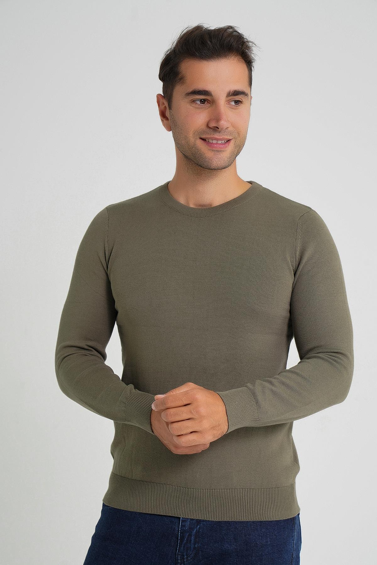 Trist Star Haki Erkek %100 Pamuk Bisiklet Yaka Triko Kazak TRIST-1101